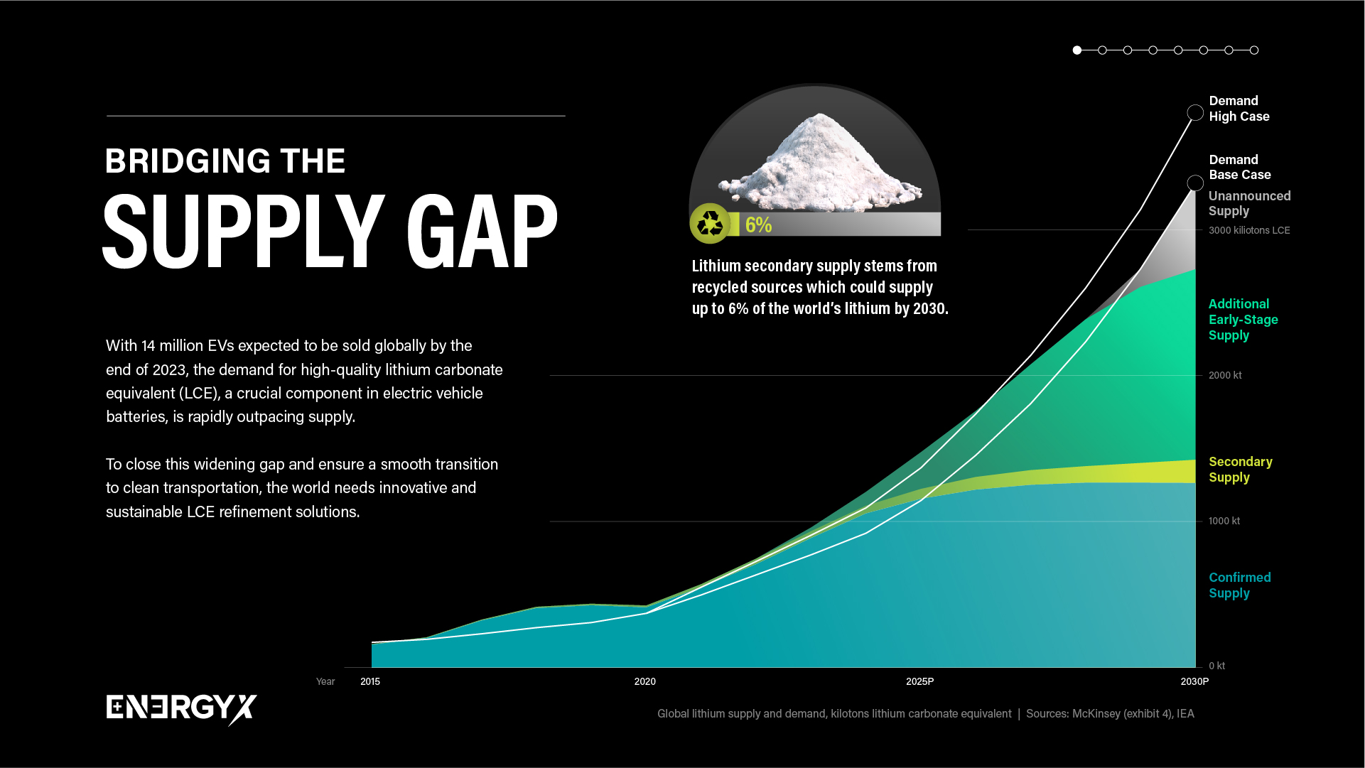 EnergyX was recently featured in Visual Capitalist, a leading platform for visualizing data and trends in the world of finance, technology, and energy. This feature spotlights how EnergyX is playing a pivotal role in bridging the supply / demand gap in lithium, a critical component in the booming electric vehicle (EV) industry.